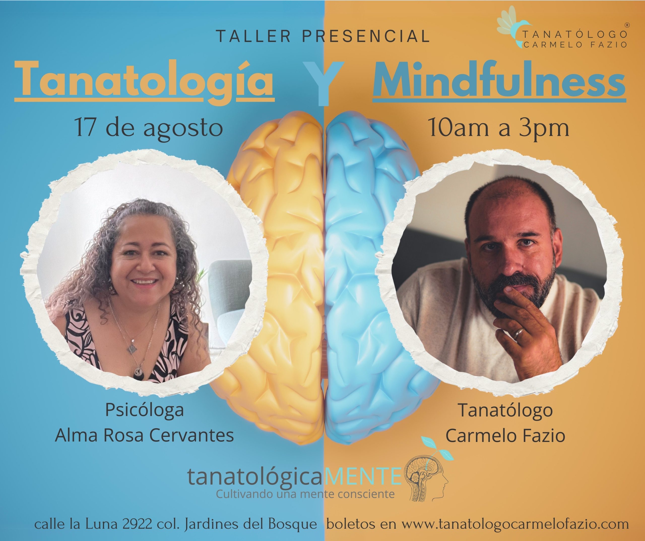 Este taller es de cupo limitado. Si necesitas facturar el costo del taller en más IVA, por favor envía un correo con tus datos a contacto@tanatologocarmelofazio.com